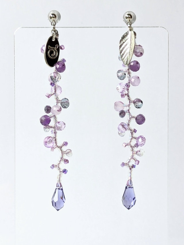 rocoroビーズアート『藤の雨』イヤリング