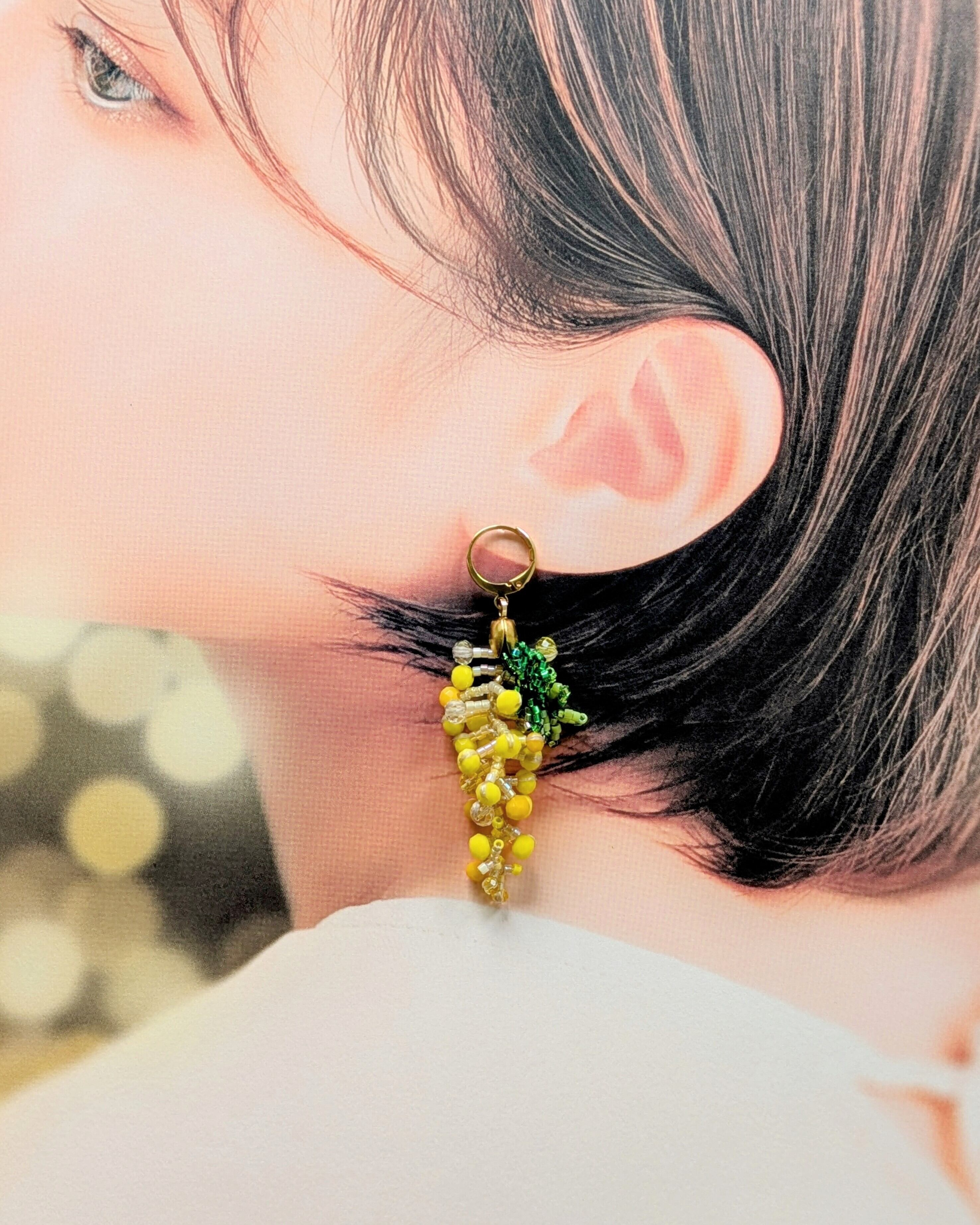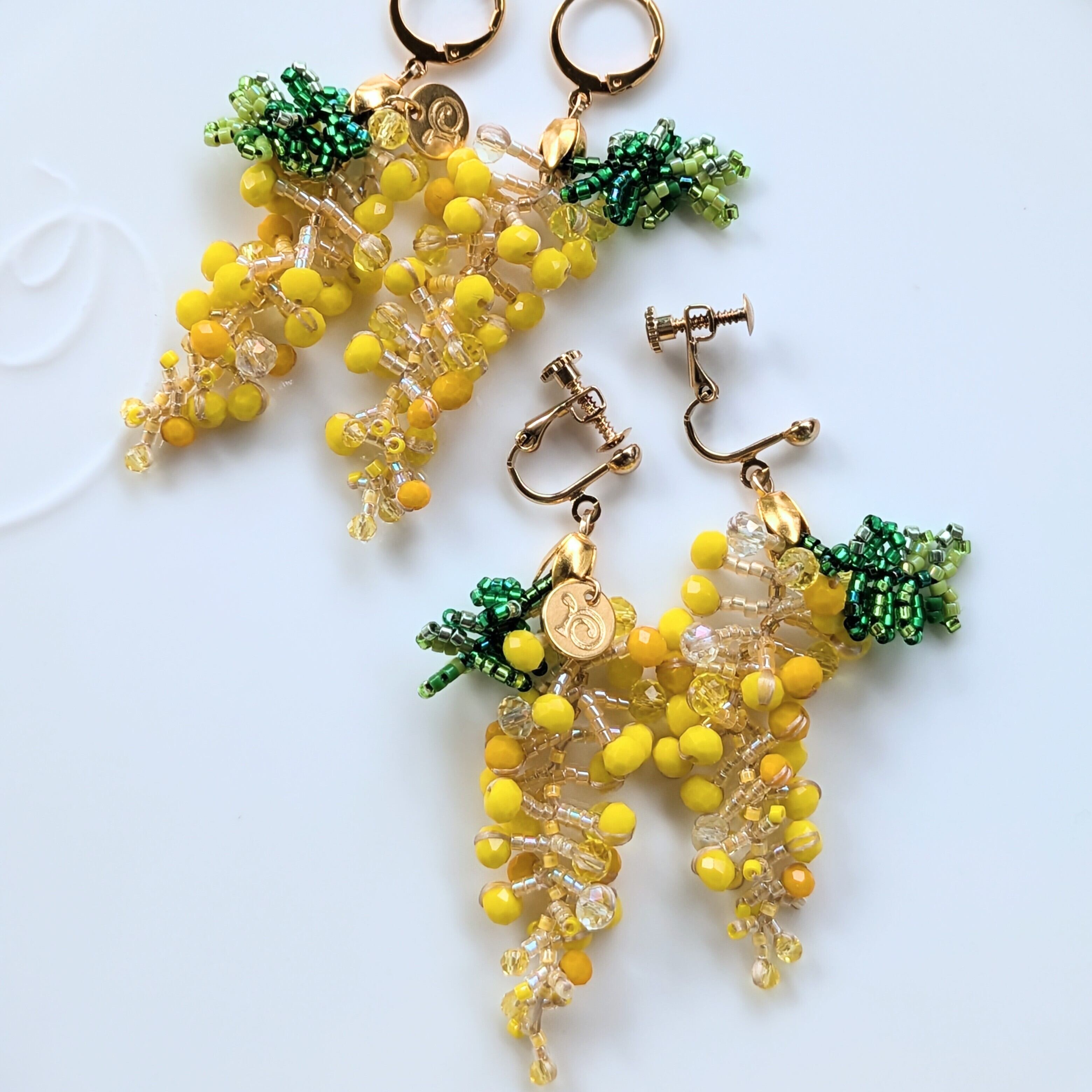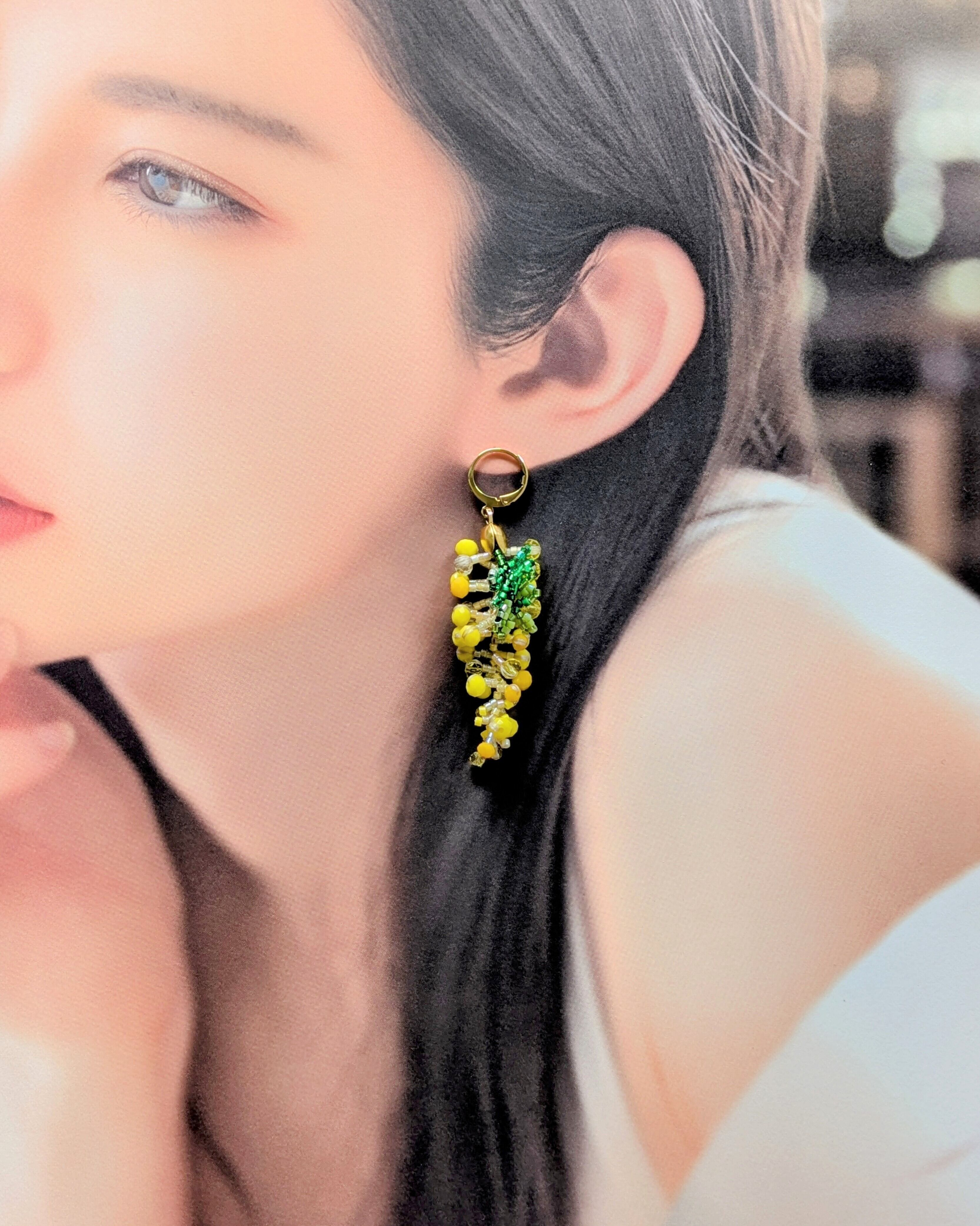 『rocoroビーズアート』で作成したミモザのピアス/イヤリング。