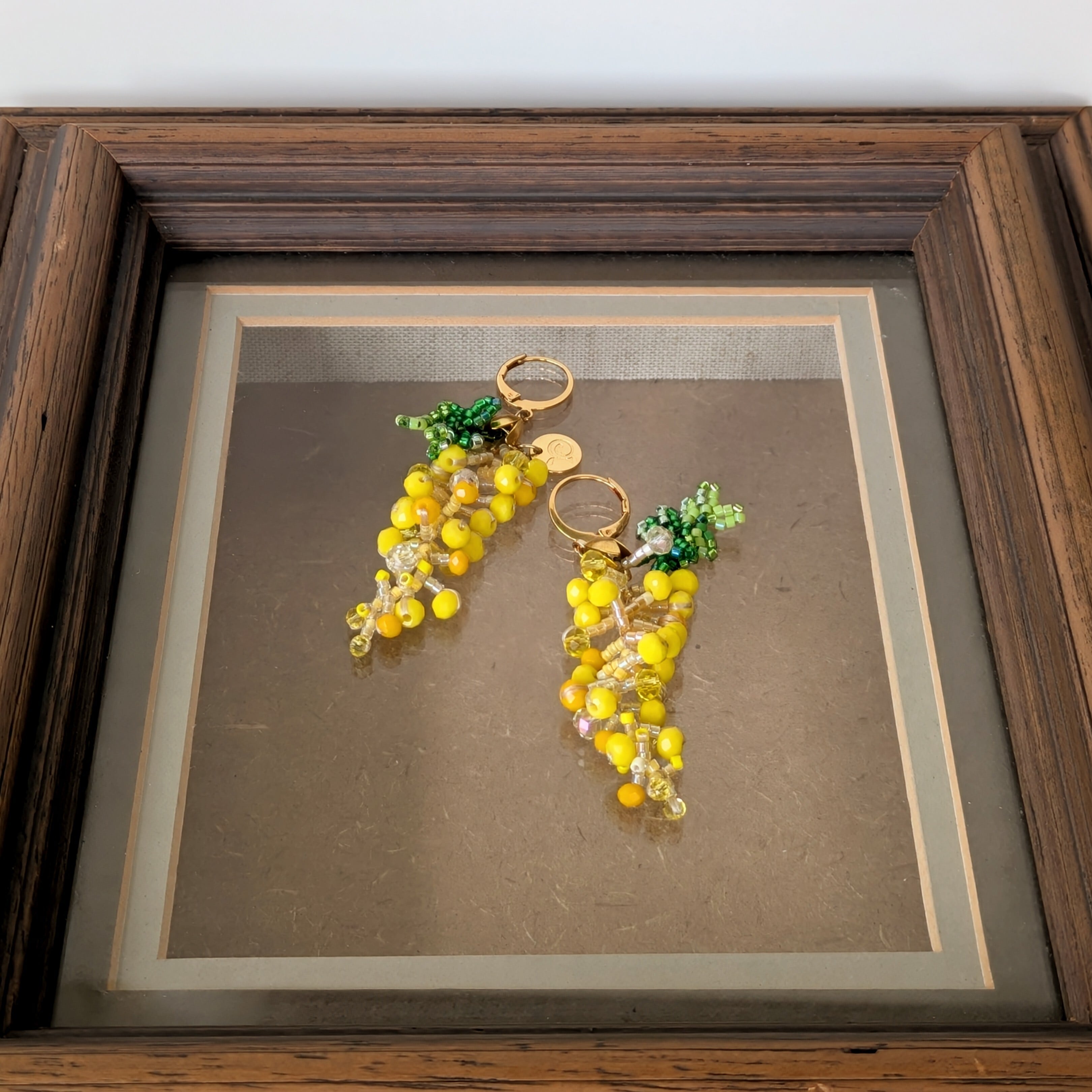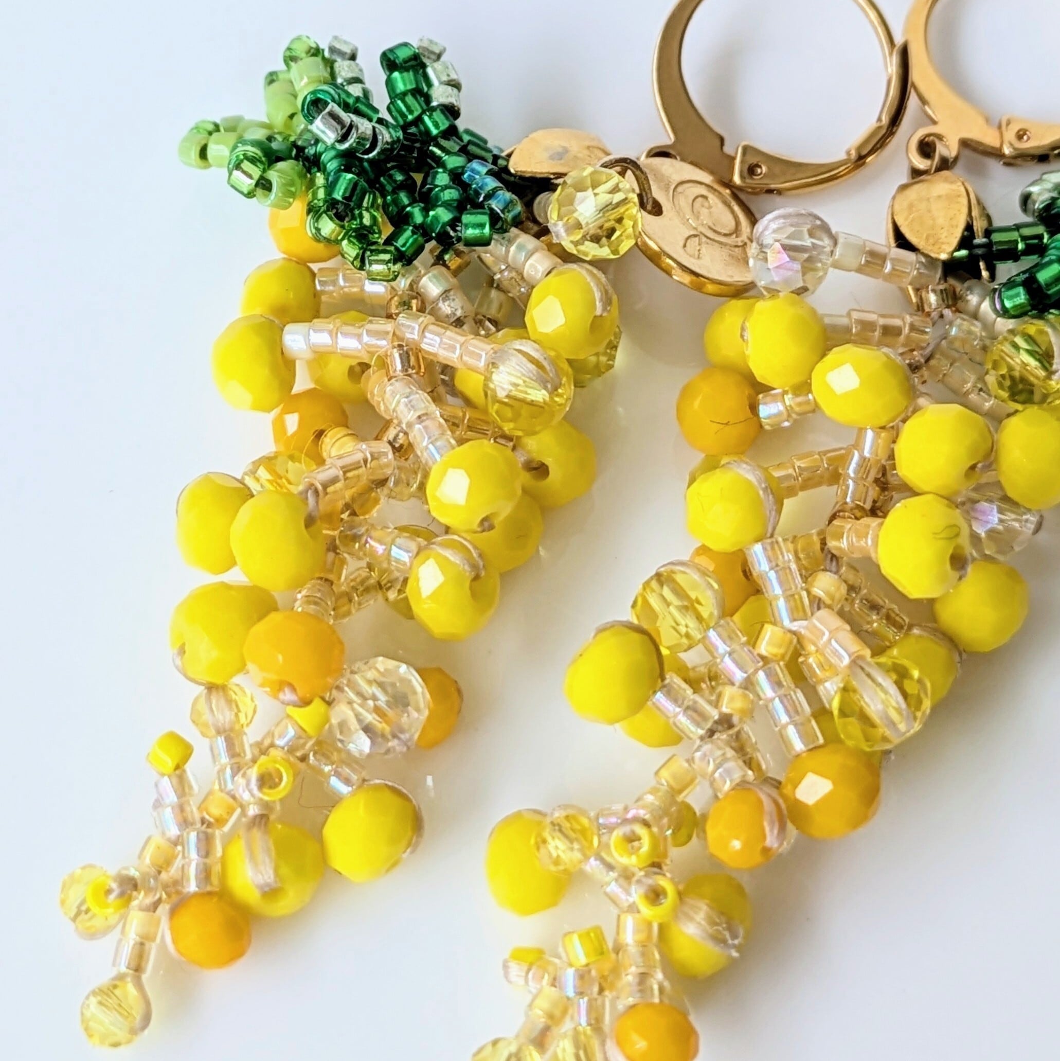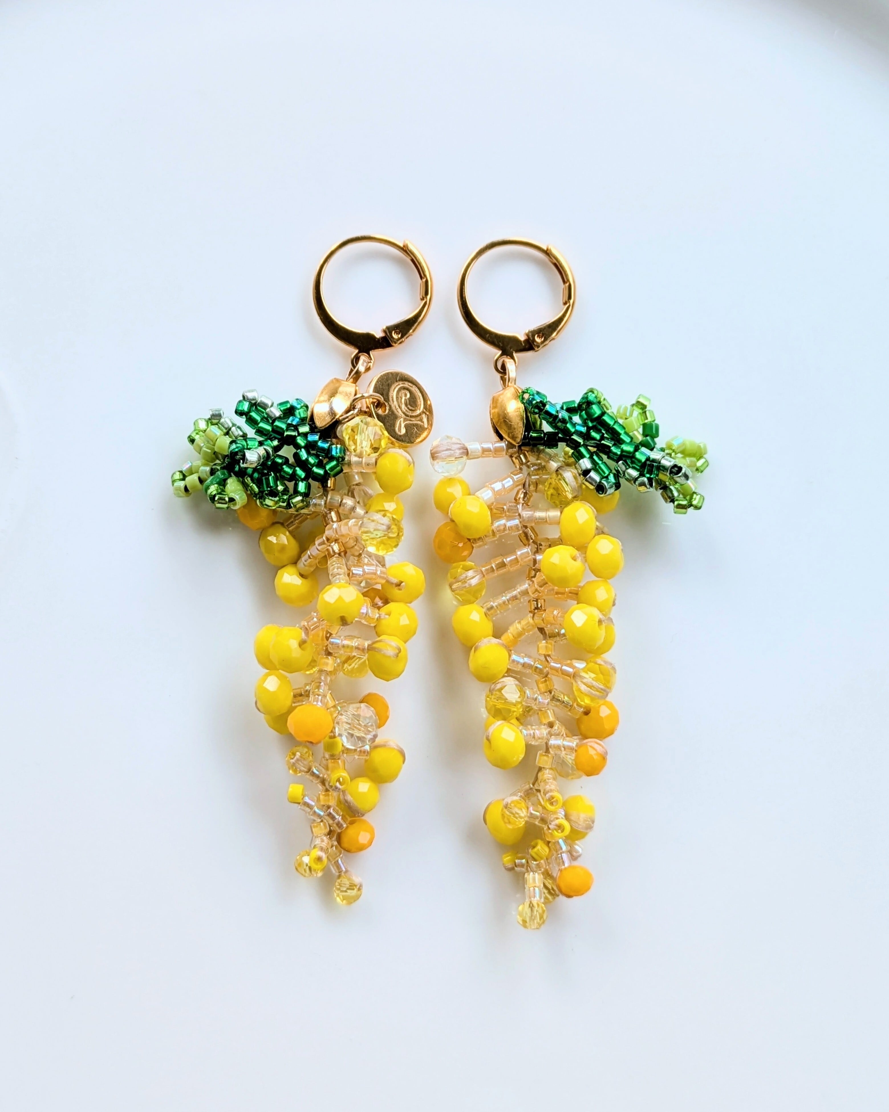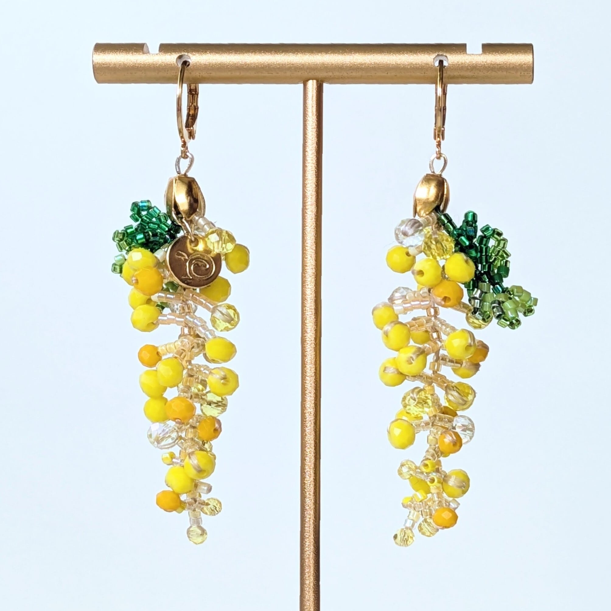 『rocoroビーズアート』で作成したミモザのピアス/イヤリング。