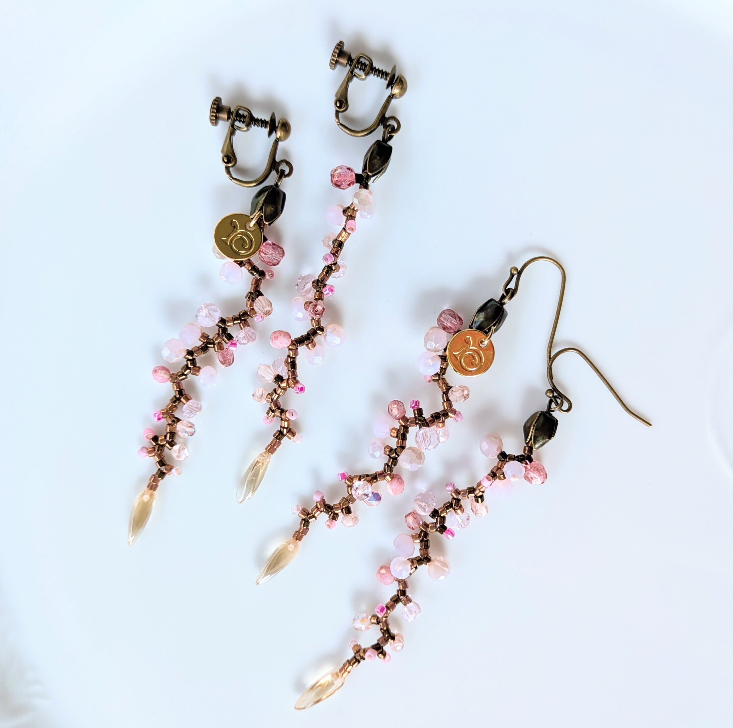 イヤリング金具:真鍮ベースのアンティークゴールド色・ネジバネ式